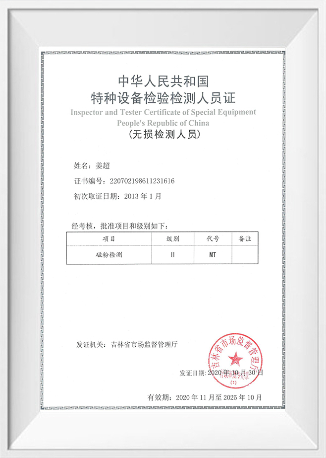ผู้ตรวจสอบและใบรับรองผู้ทดสอบอุปกรณ์พิเศษสาธารณรัฐประชาชนจีน